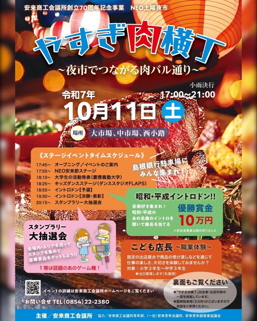 楽しそうなイベントなので皆様に共有!当社社長もこのイベントの実行委員会に所属しております😊安来商工会議所創立70周年を記念し、安来の街に明かりを「灯す」というテーマ💡楽しいイベントが超盛り沢山です!是非皆様お越しくださいね😆場所:安来市安来町大市場、中市場、西小路開催日:令和7年10月11日(土)17:00~21:00<<<<<<<&…